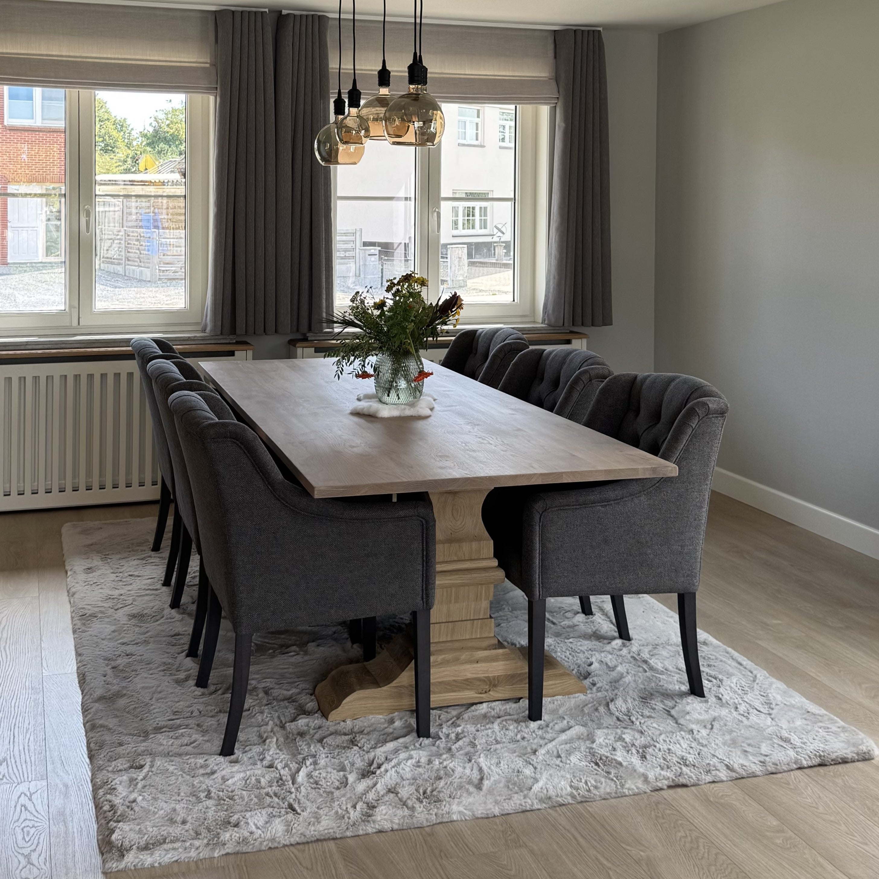 Each of our solid oak dining tables is handcrafted in Europe using high-quality, sustainably sourced oak. All models can be fully customised to your preferences, including table size, wood grade, edge profile, and finish. Choose from a range of natural oil treatments, brushed or smooth textures, and rustic or refined wood selections to create a one-of-a-kind piece tailored to your interior. Whether you prefer a bold, farmhouse look or a minimalist design, our solid oak tables are built to last and designed to impress.