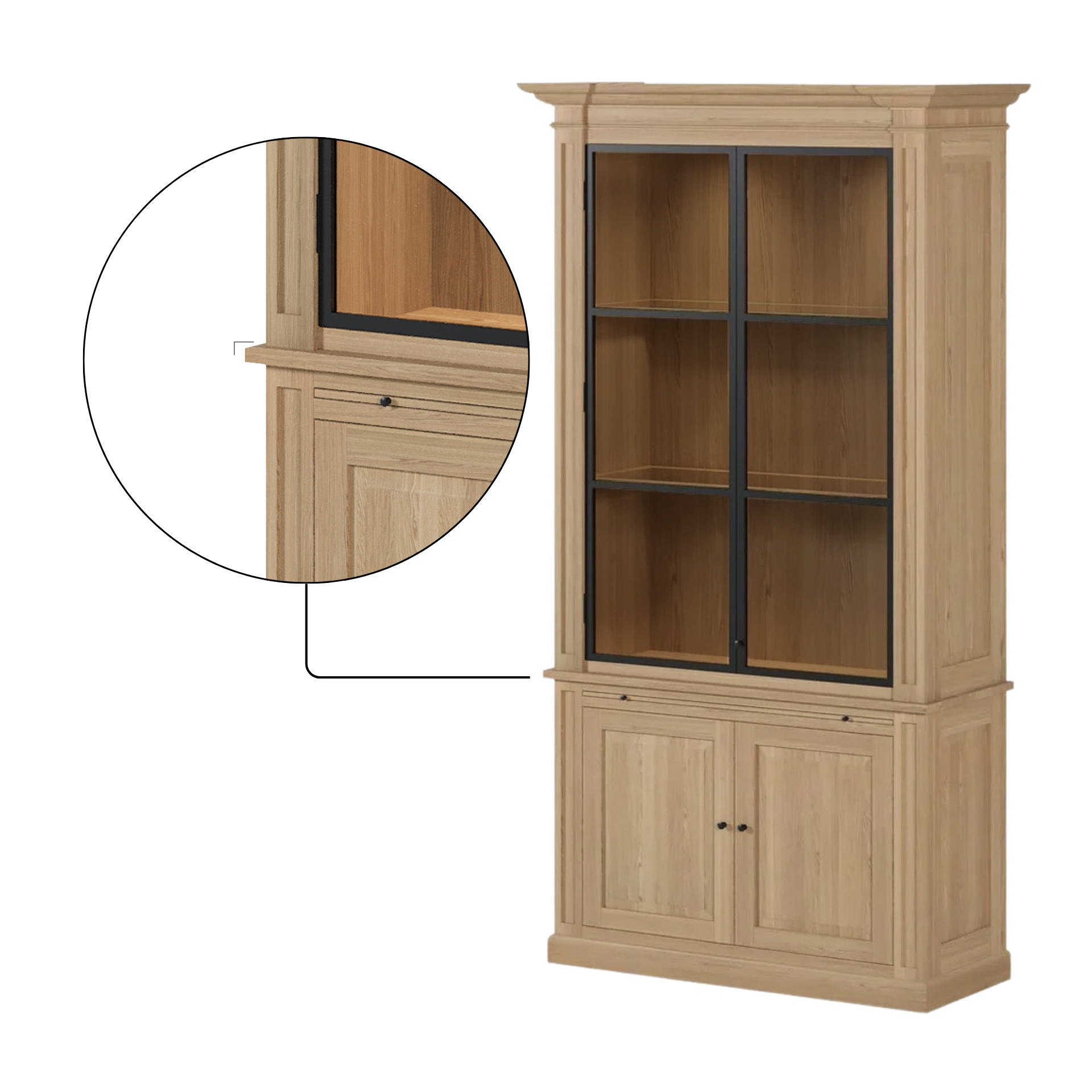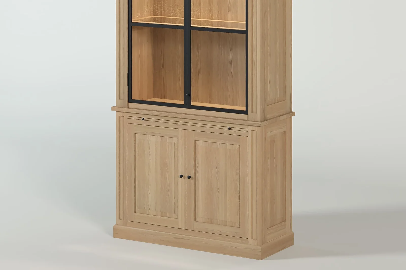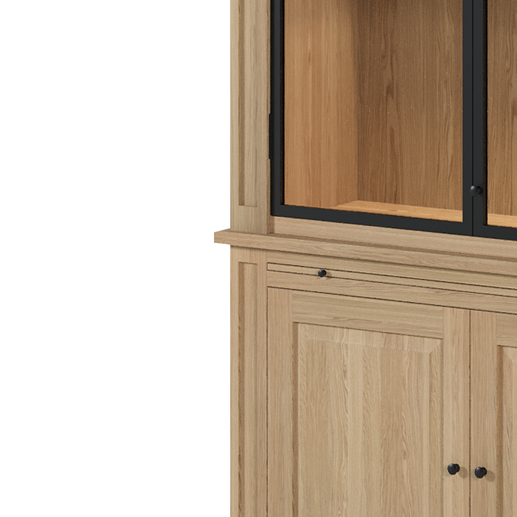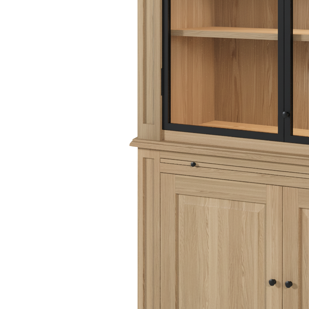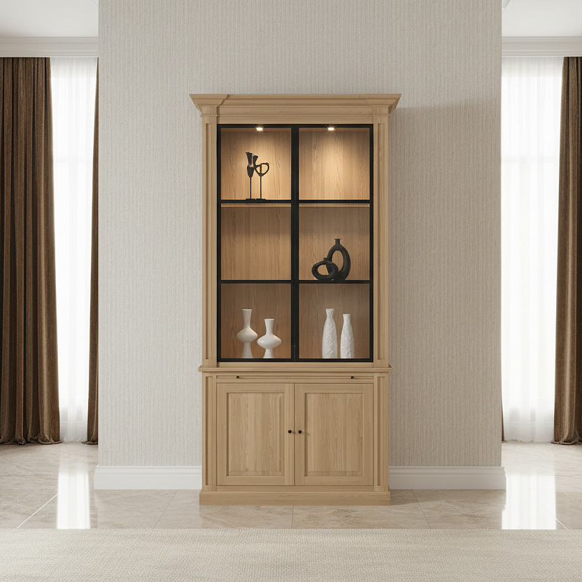 With ample storage space, including upper glass display shelves and lower closed compartments, the Amber cabinet offers the perfect balance between beauty and practicality. Every detail, from the visible oak grain to the precise joinery, reflects authentic European craftsmanship.