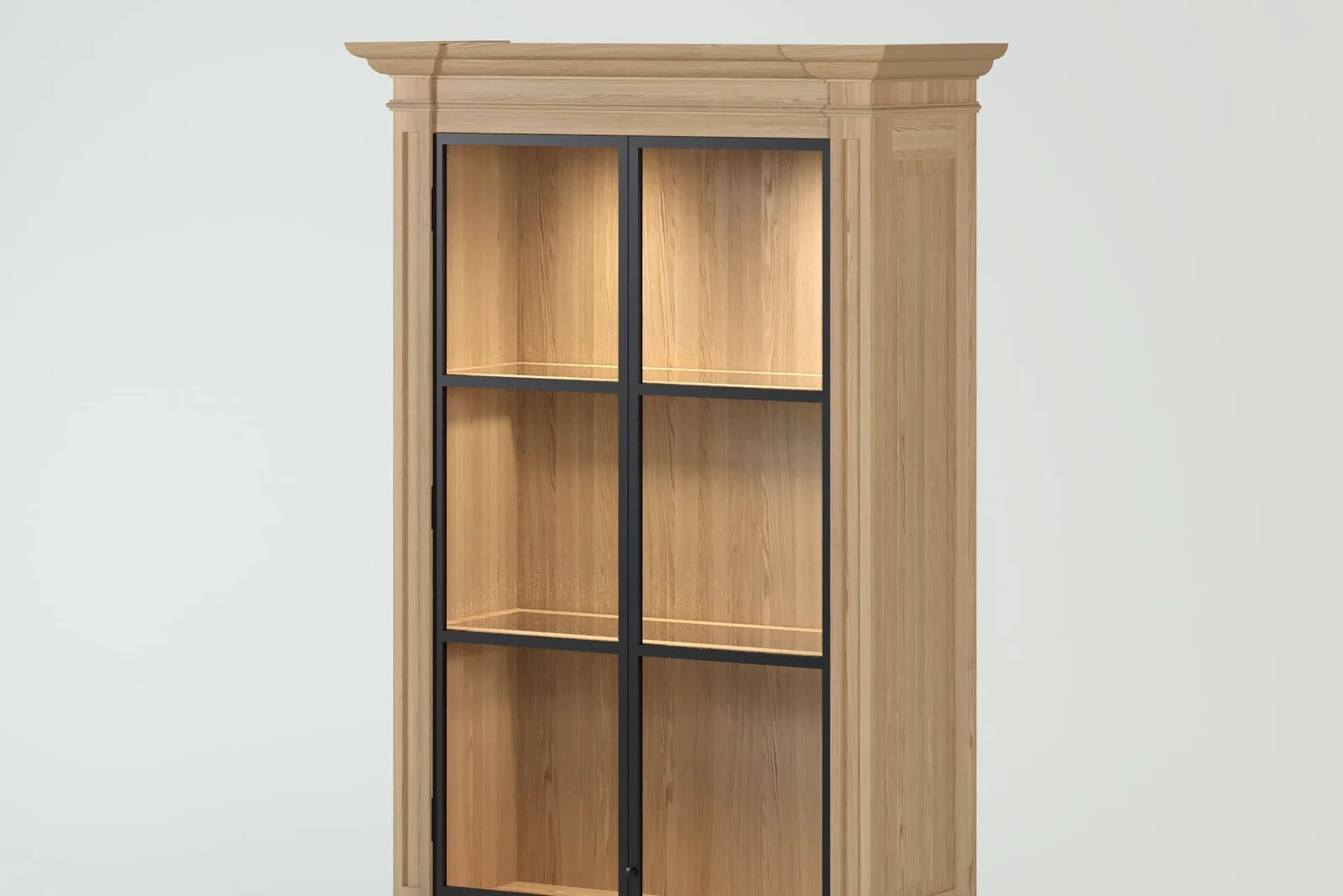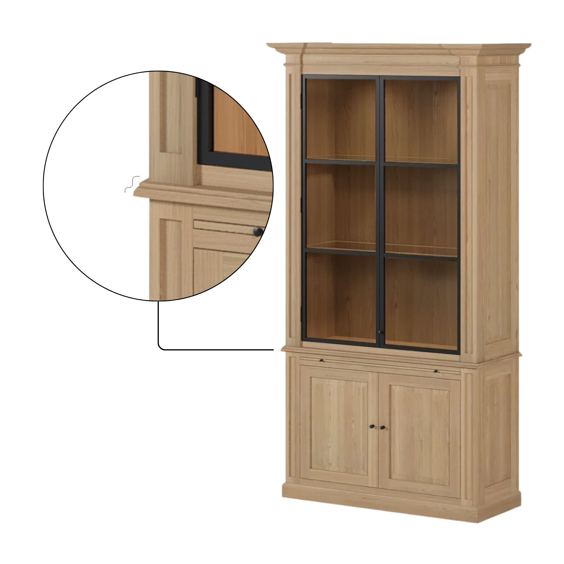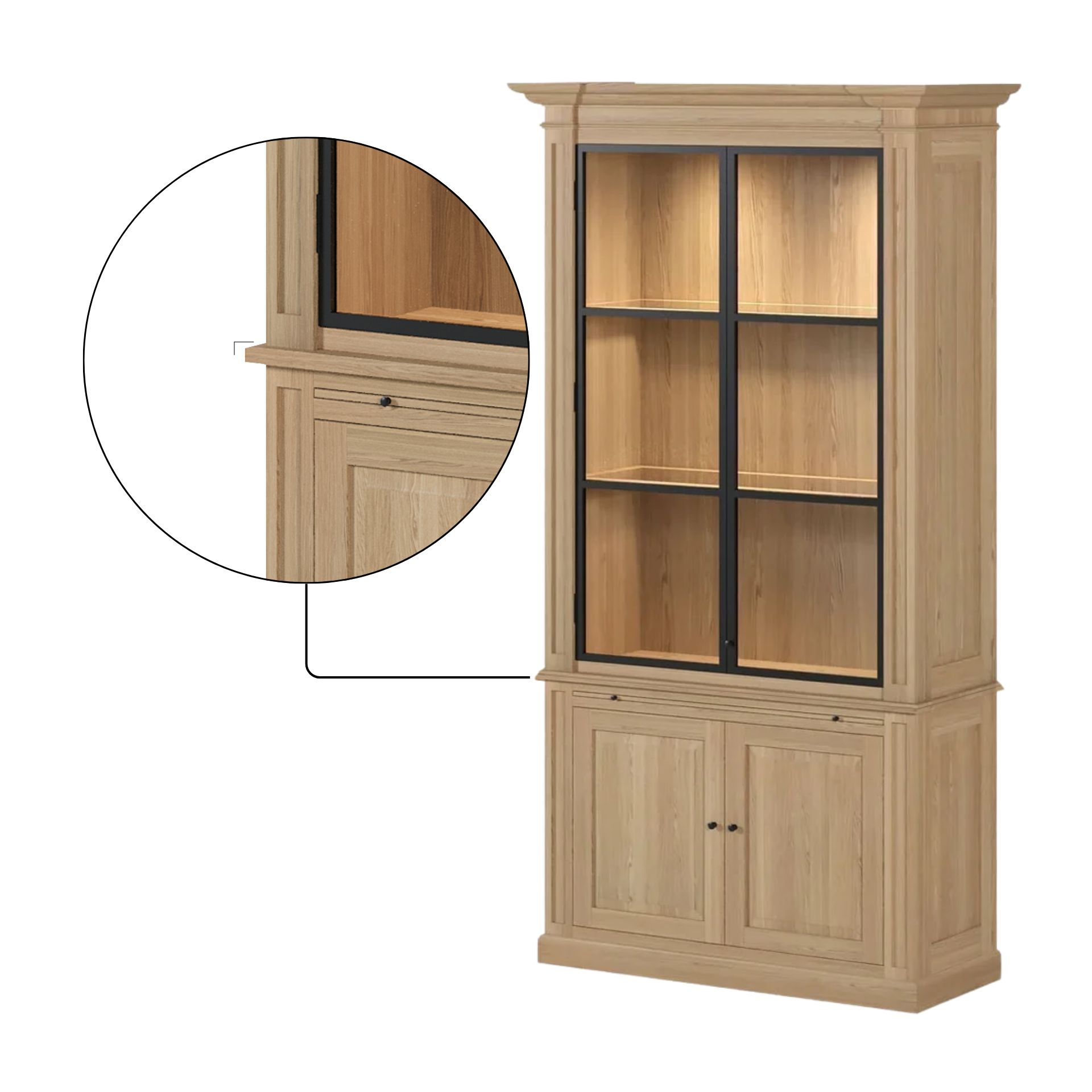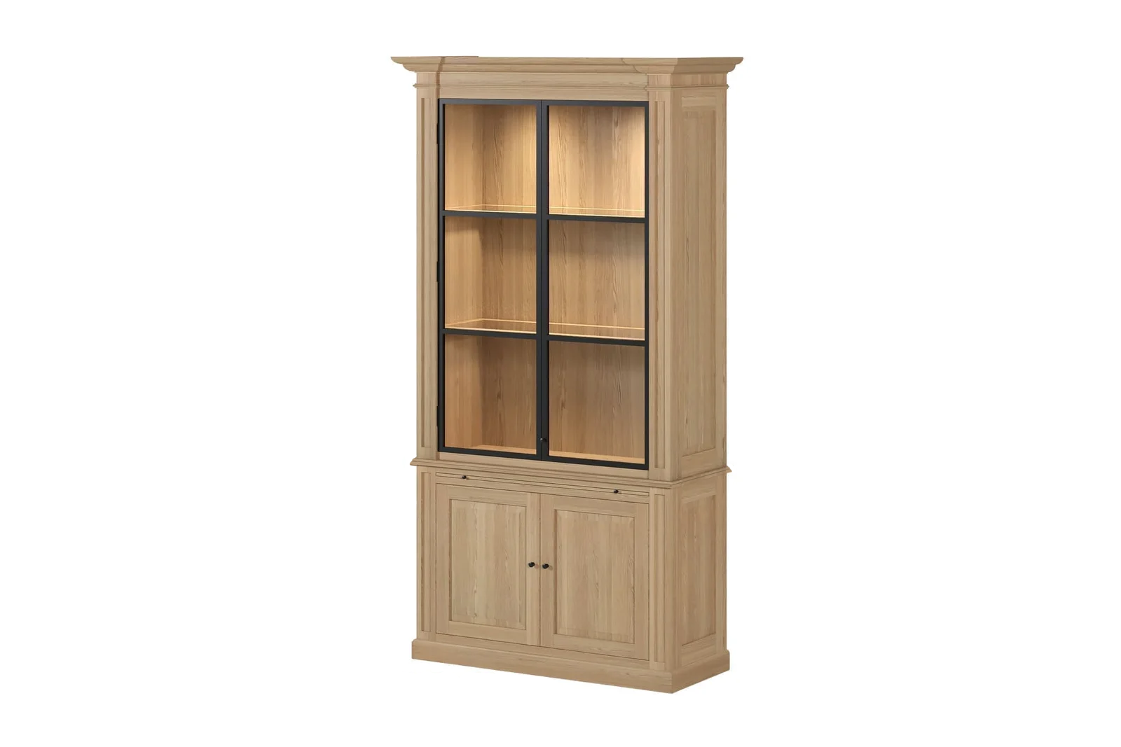 With ample storage space, including upper glass display shelves and lower closed compartments, the Amber cabinet offers the perfect balance between beauty and practicality. Every detail, from the visible oak grain to the precise joinery, reflects authentic European craftsmanship.
