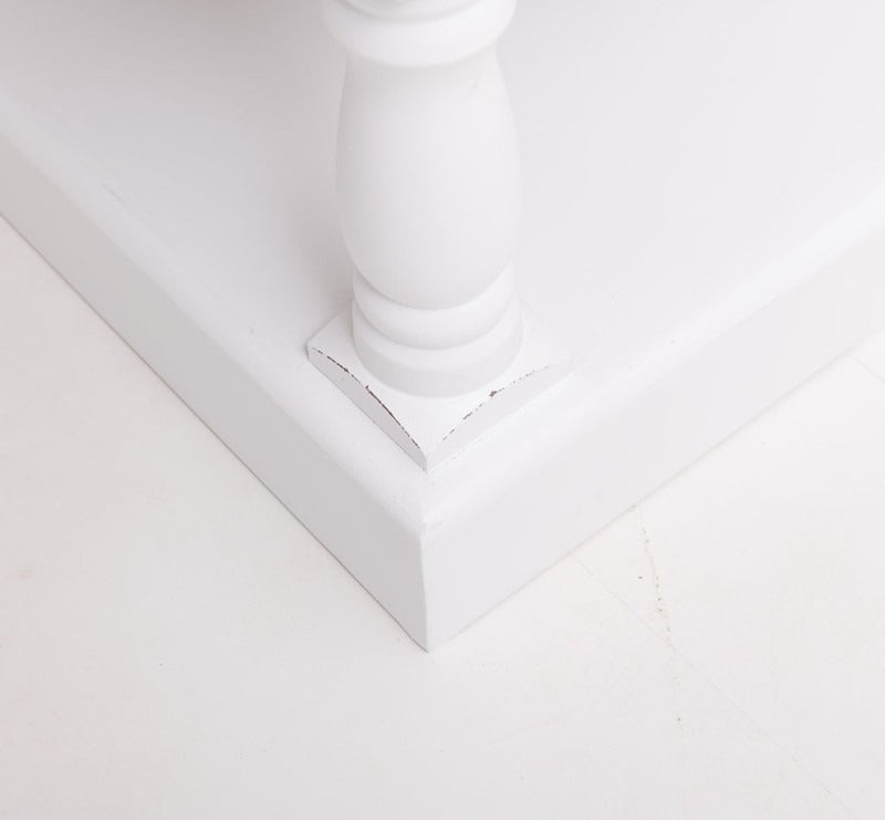Solid pine base with hand-applied white finish
