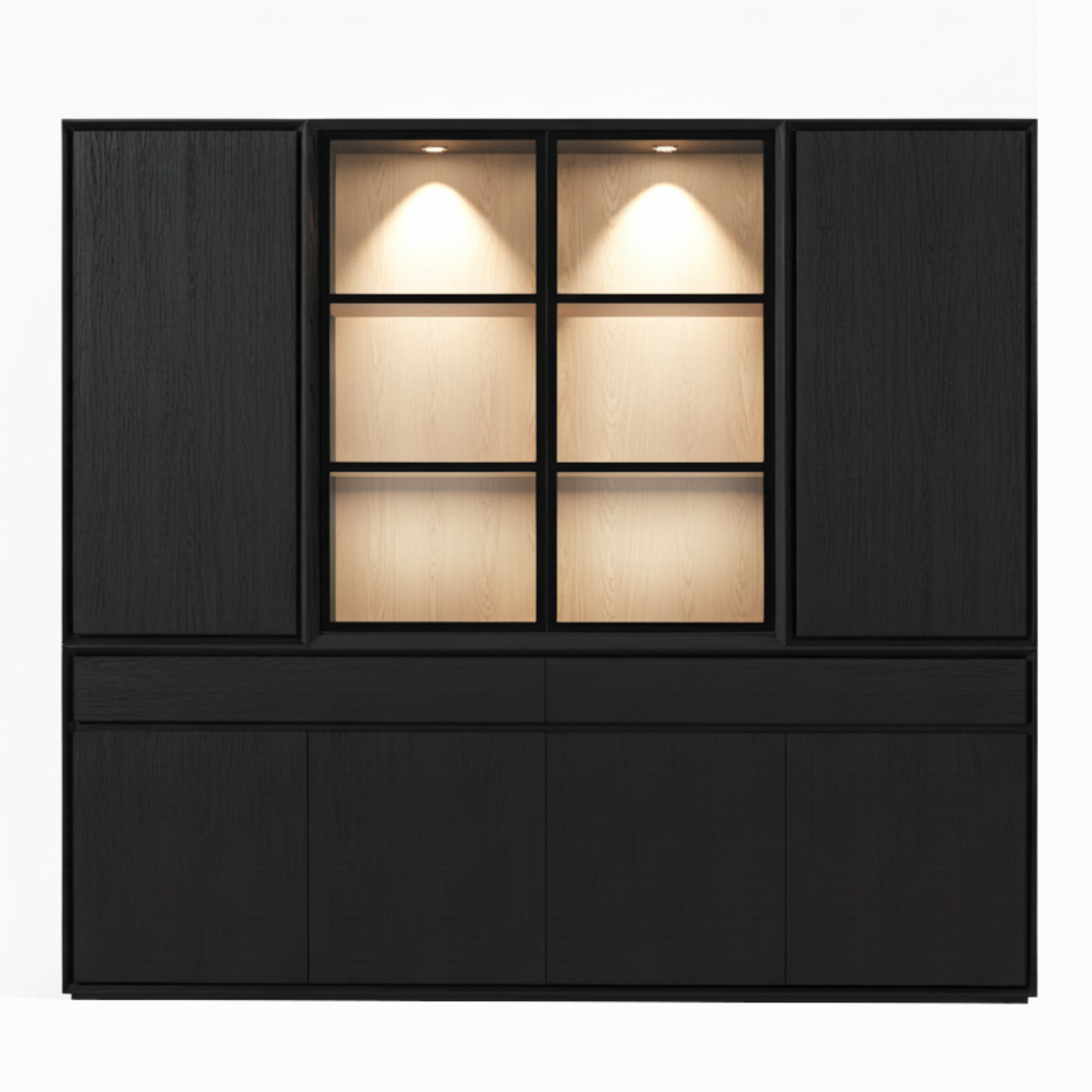 Perfect for dining rooms, living rooms or open-plan interiors, the Mezor Showcase Cabinet merges utility with elegance. Its modular design and customizable features allow it to adapt to different needs while maintaining a sharp, clean presence.