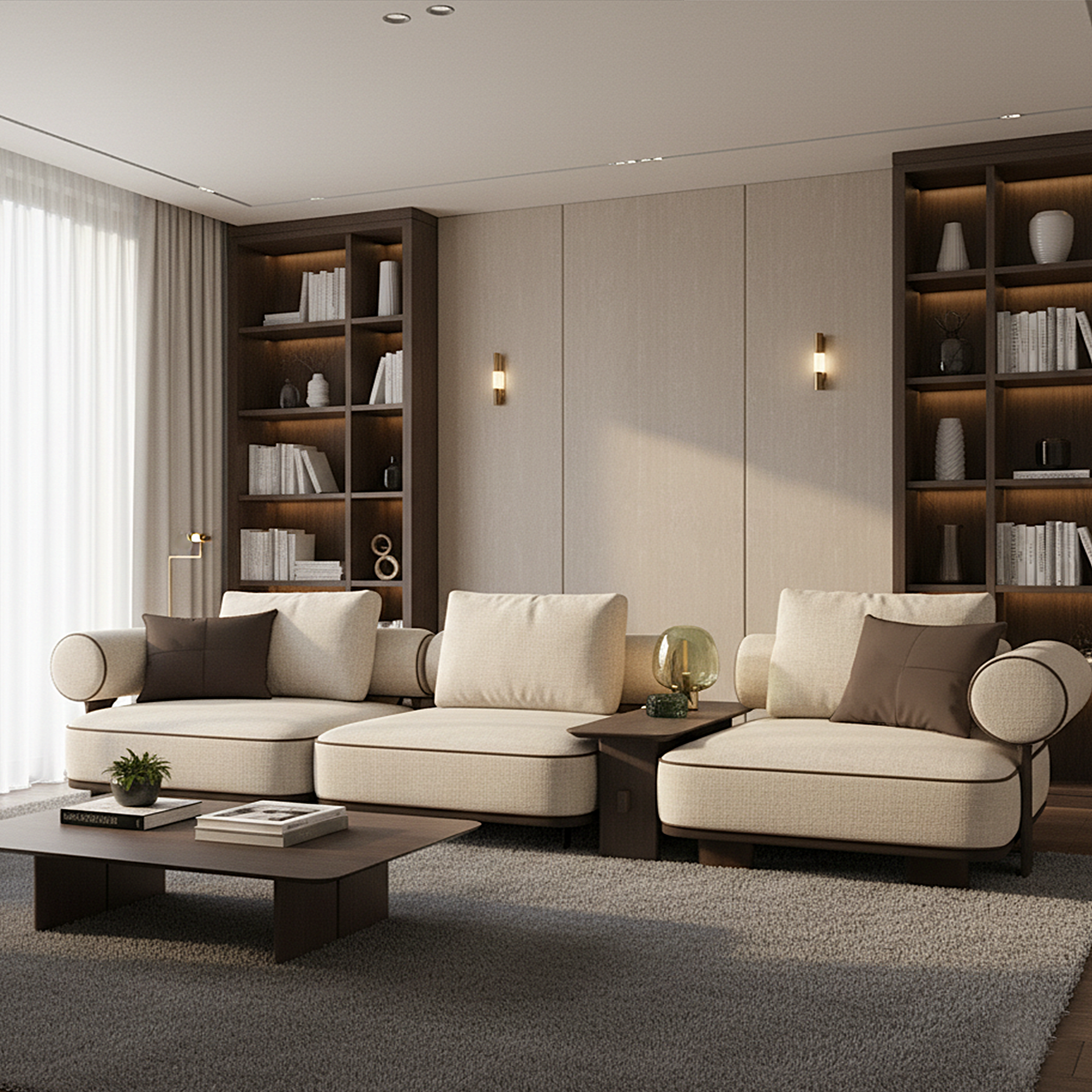 Neutral beige tone offers warmth without visual weight