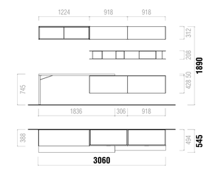 1x Expansive lower floating cabinet with dual storage compartments